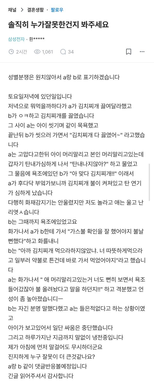 누가 잘못한지 판단해달라는 블라인...ㄹㅇ