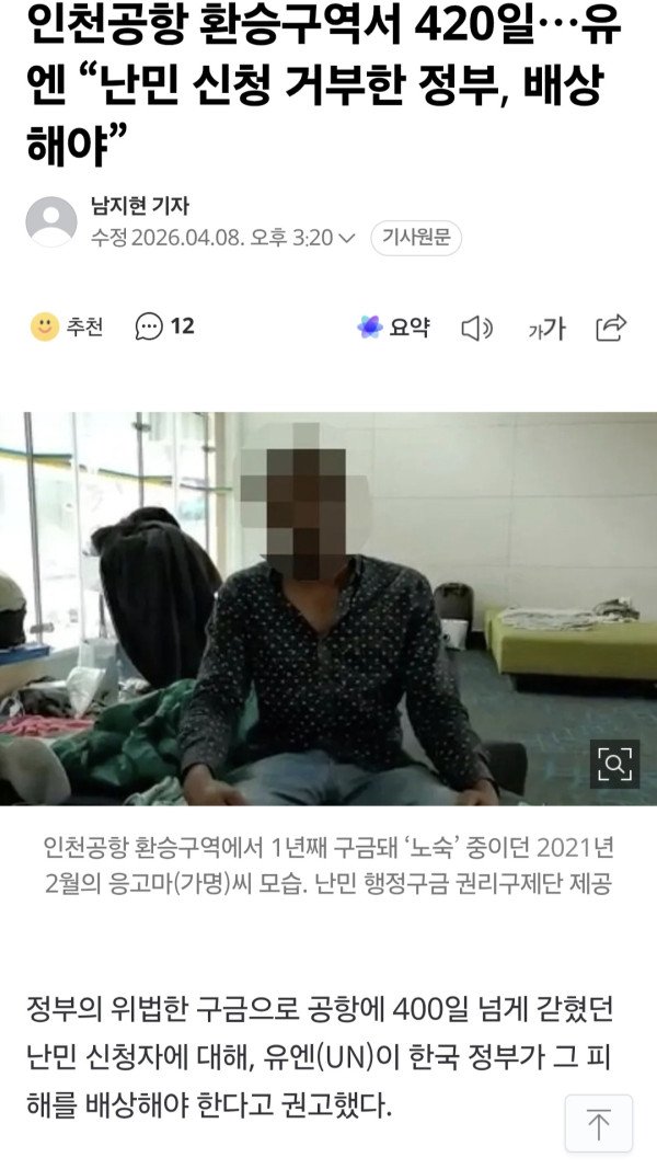 싱글벙글 난민 거부해서 한국 압박하는 유엔
