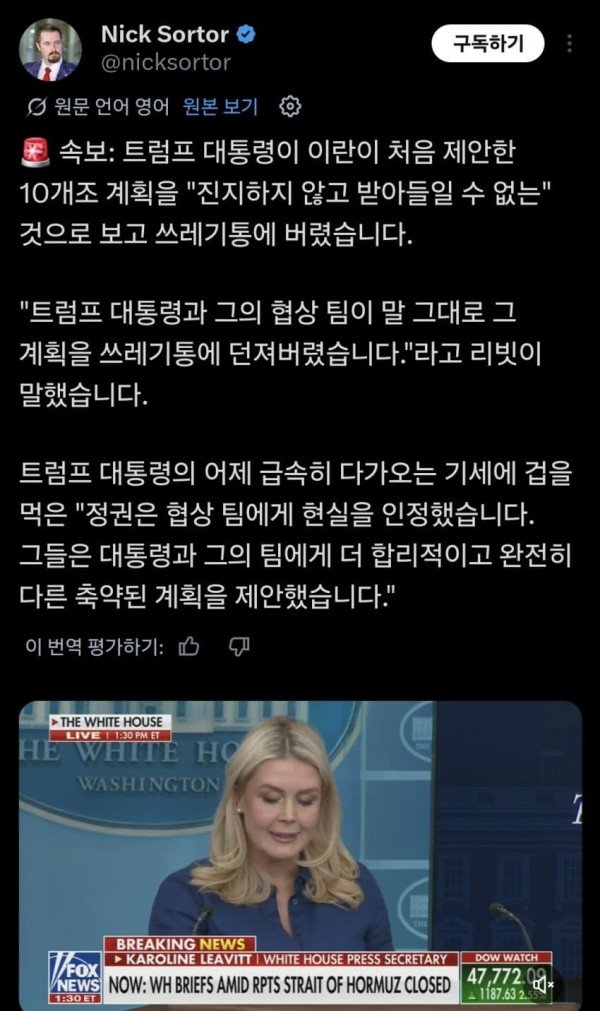 라이브) 트럼프 - 이란제시 휴전안 10종 쓰레기통에 버림