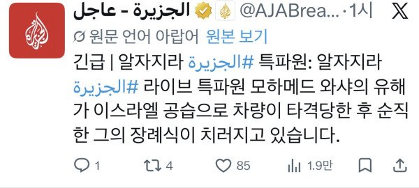 속보ㅣ이스라엘 공격으로 알자지라특파원 사망