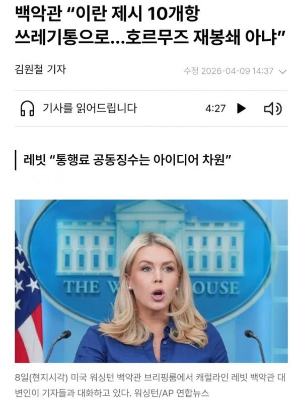 은 8일(현지 시간) 정례 브리핑에서 “이란이 처음에 내놓은 10개 조항의 계획안은 근본적으로 진정성이 없고 수용 불가능한 수준이었다”며