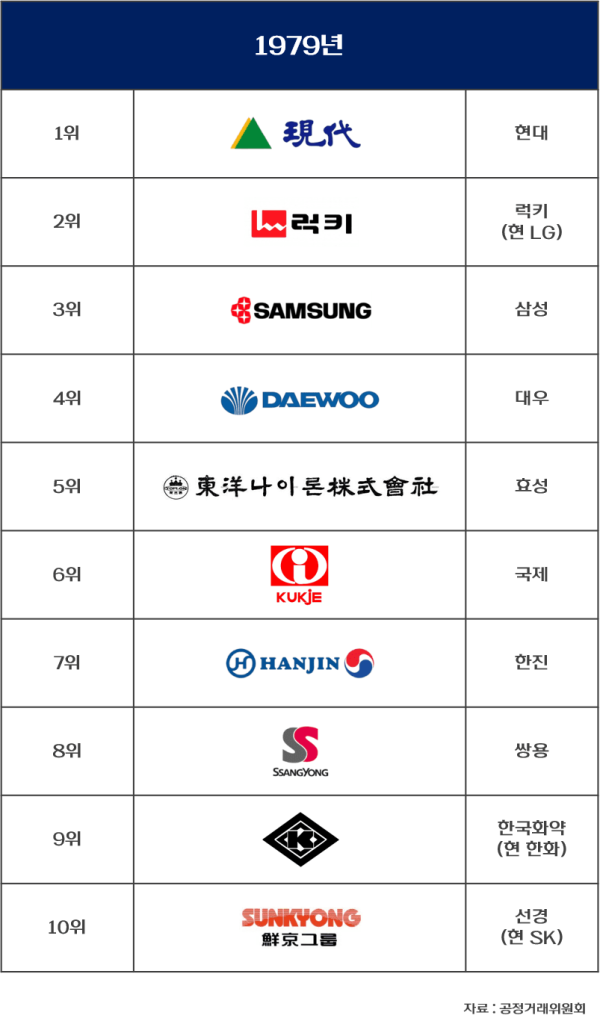 대한민국 기업들의 시대별 재계 순위 변화..jpg