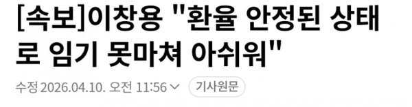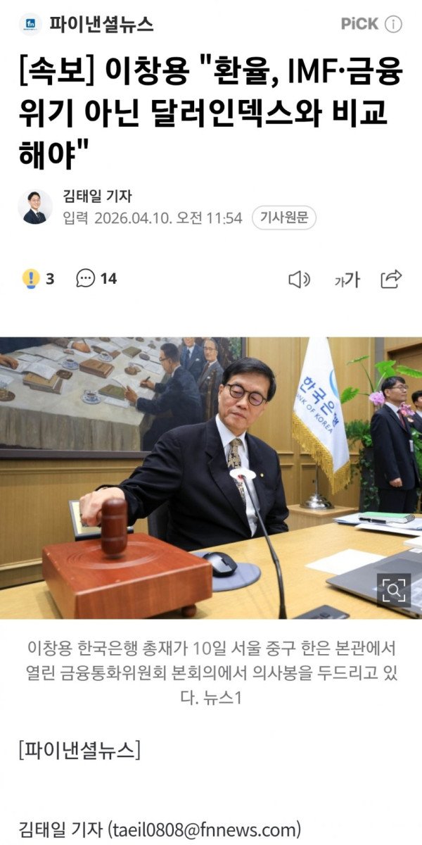 [속보] 이창용 "환율, IMF·금융위기 아닌 달러인덱스와 비교해야"