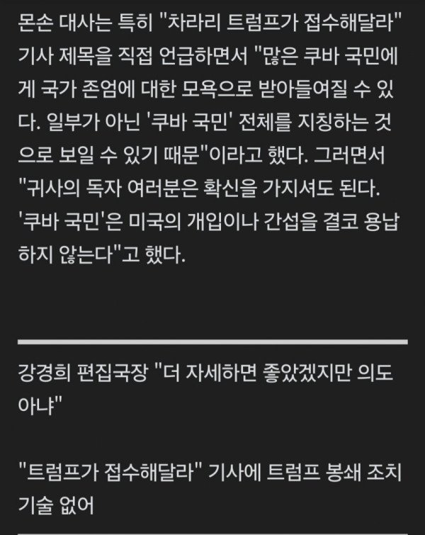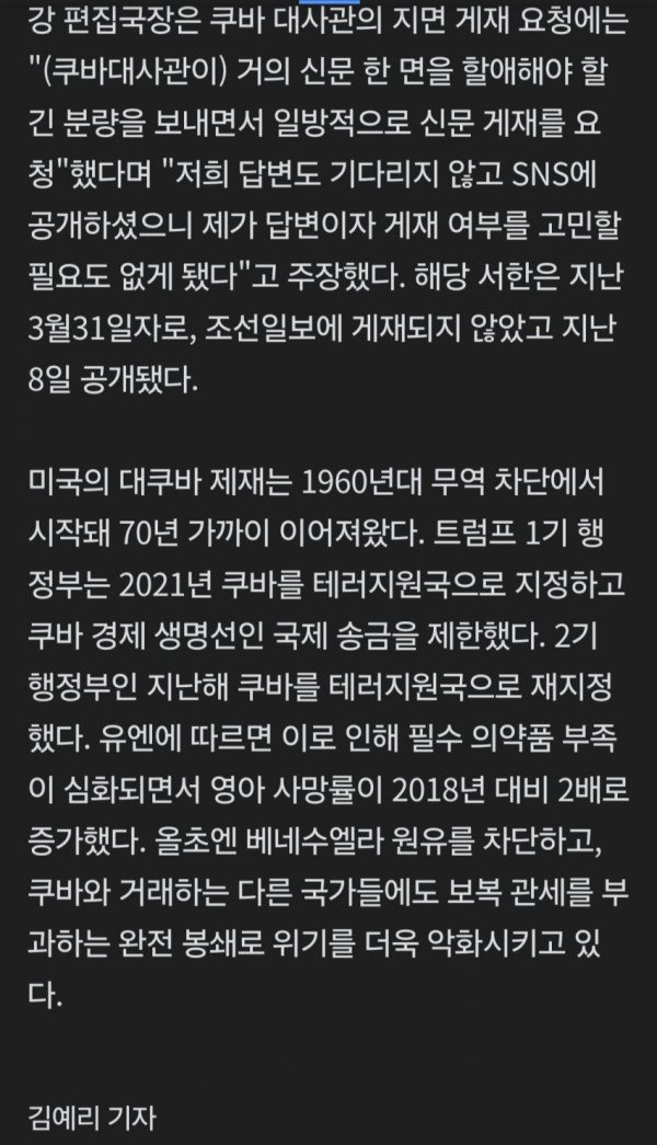 (스압)쿠바대사 "조선일보 보도, 국민에 대한 모욕이다"