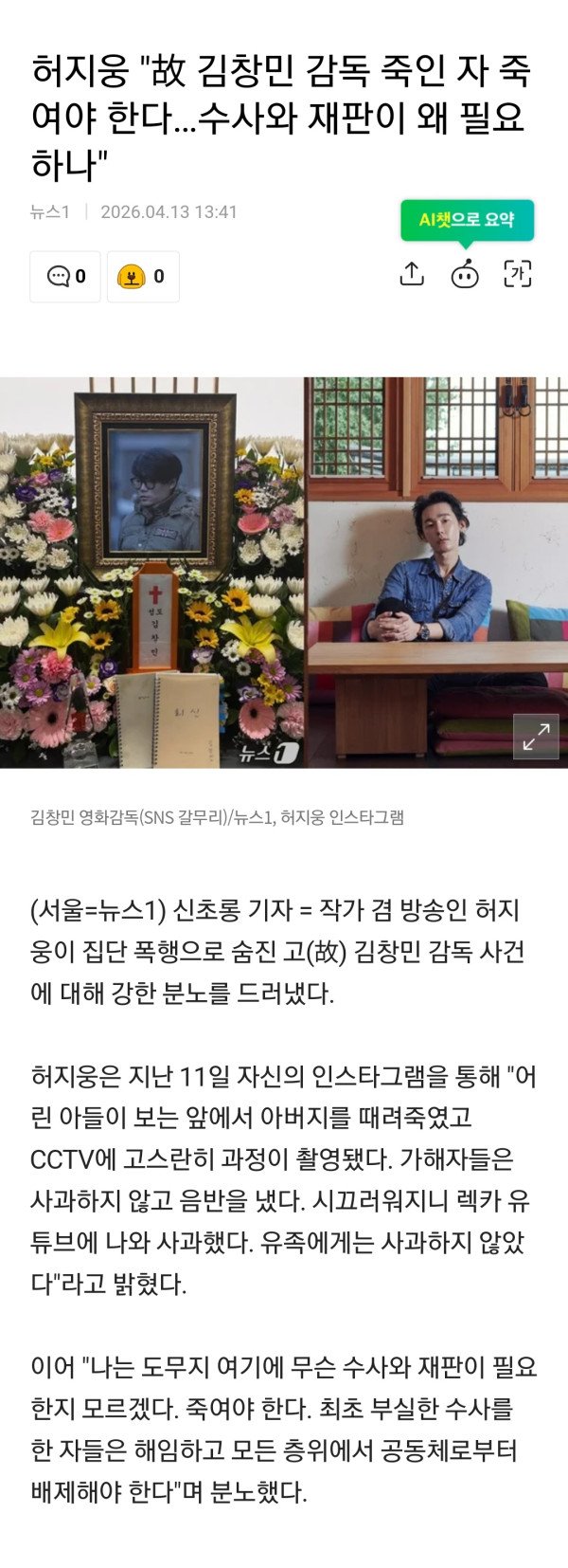 허지웅 "김창민 감독 죽인 사람들은 죽어 마땅하다"