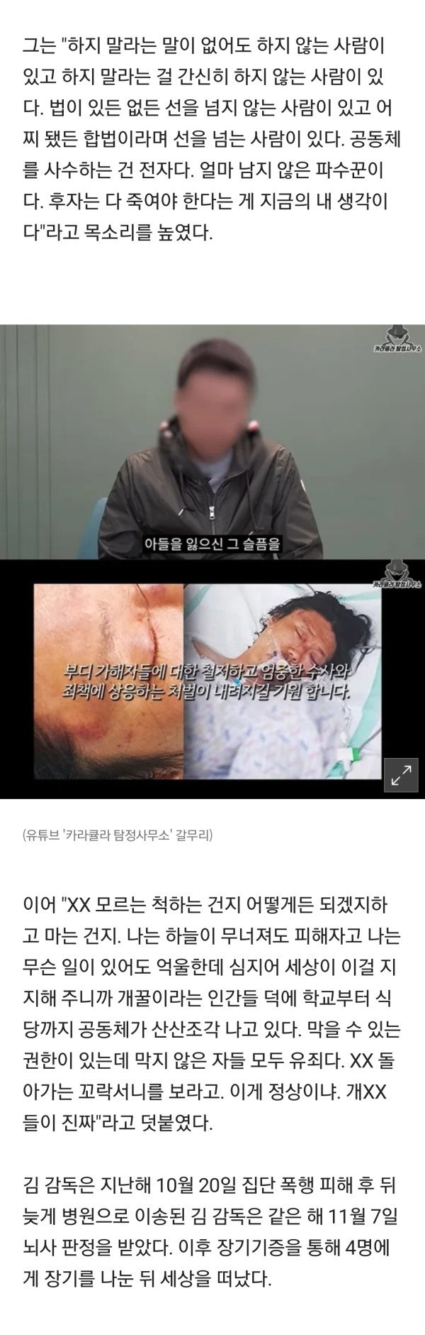 “저는 살해범” 가해자 사과 영상에…故김창민 감독 부친 “연락 없었다”