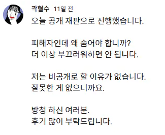 트라우마가 많이 없어지셨는지 공개 재판을 진행했다고 함