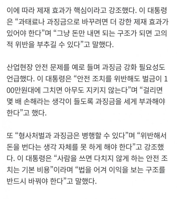 이재명 “형사처벌 너무 남발..경제 제재가 더 효과적”
