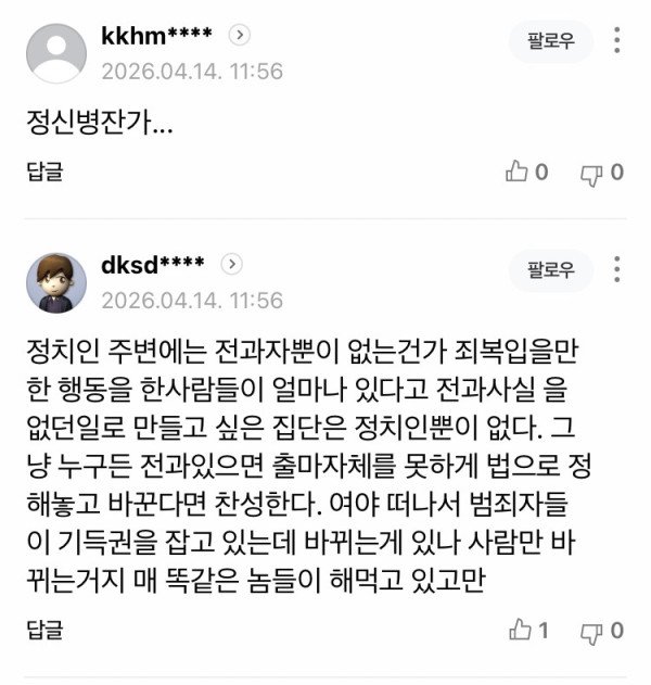 전과자가 이딴 소리는 안했으면 한다