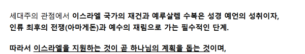 따라서 미국에서는 선택받은 민족인 이스라엘을 지원하는게