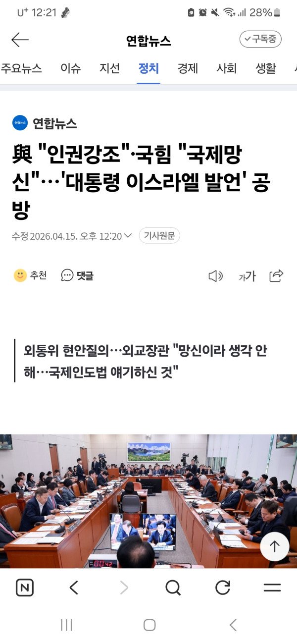 與 "인권강조"·국힘 "국제망신"…'대통령이스라엘 발언' 공방
