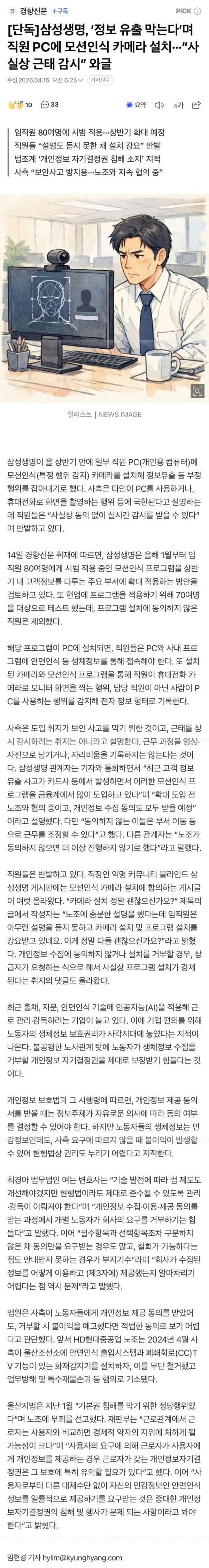 삼성생명, 정보 유출 막는다며 직원 PC에 모션인식 카메라 설치...
