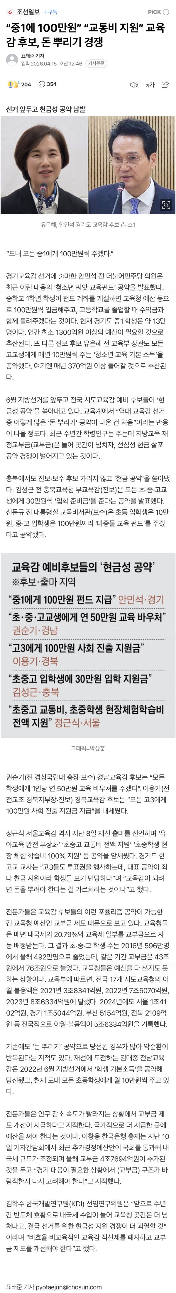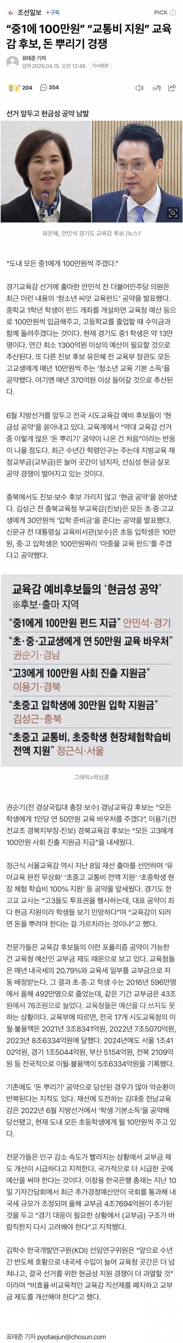 “중1에 100만원” “교통비 지원” 교육감 후보, 돈 뿌리기 경쟁
