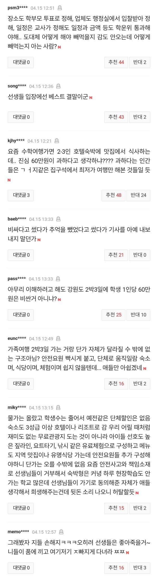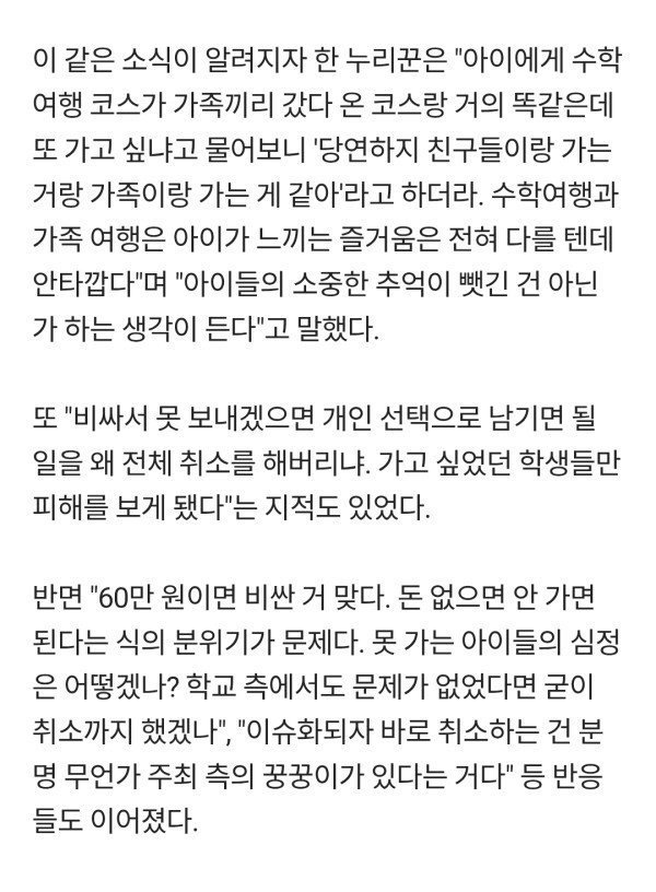 "우린 멘탈털려" '수학여행 60만원' 논란에 현직교사 입 열었다