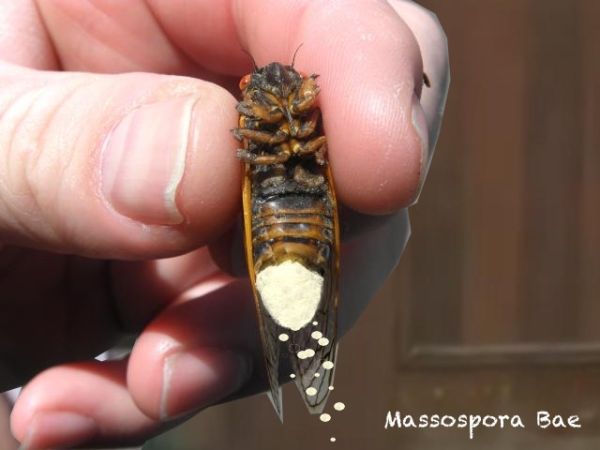 매미에 기생하는 곰팡이 마소스포라(Massospora)는 감염된 수컷 매미가 계속 울게 만들고,