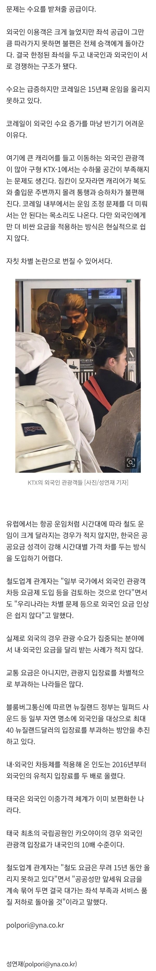 1분기 이용률 46%↑…좌석 놓고 내국인과 '경쟁' 구도 요즘 기차여행을 하려는 사람들 사이에서는 "KTX 표를 구하기가 너무 어렵다"는 말이 자주 나온다. 주말은 물론 금요일 오후부터는 표 구하기가 '하늘의 별 따