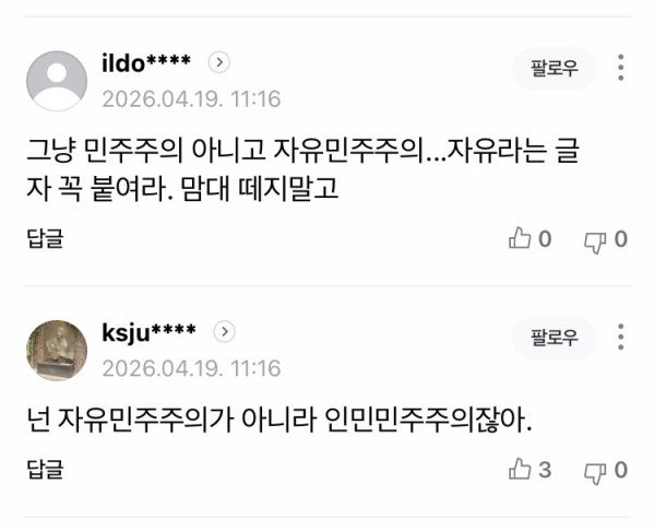 군인들도 국민이고, 경찰들도 국민인데? 편가르기식 함서, 국가의 부름받아 국민안정위해 투입된 군들을 지그들 꼴리는대로 독재 군홧발이라 말함서, 폭도들을 민주주의로 포장질 함 ㅋㅋㅋ