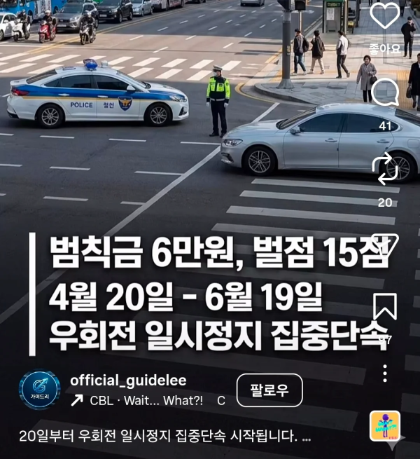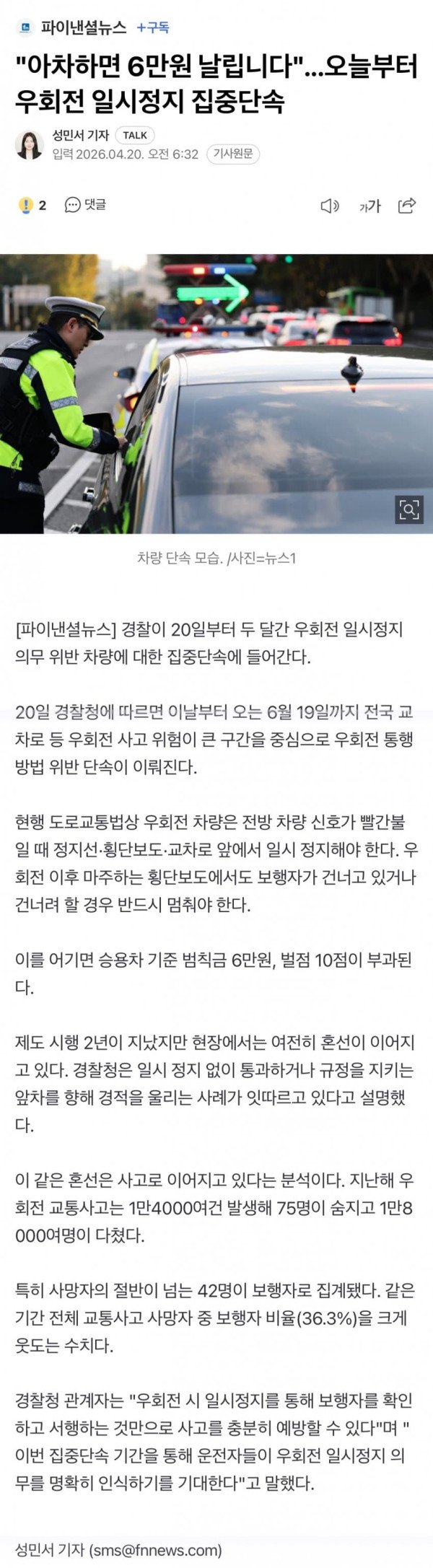 아차하면 6만원 날립니다...오늘부터 우회전 일시정지 집중단속