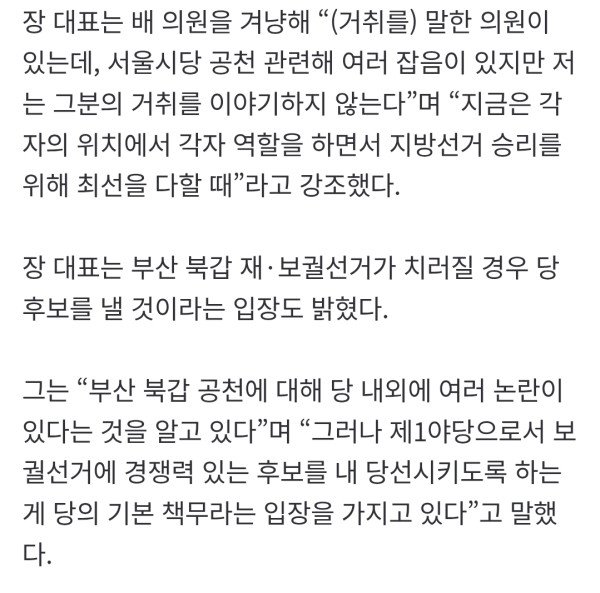 장동혁 "거취는 내가 결정"…부산 북갑 재·보궐 공천 방침 재확인