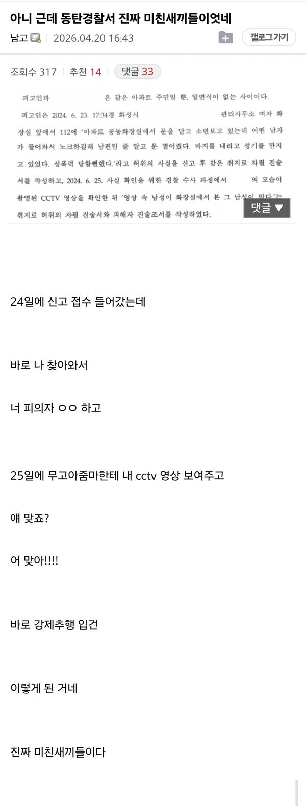 훌쩍훌쩍 동탄경찰서 성범죄 누명 피해자 근황