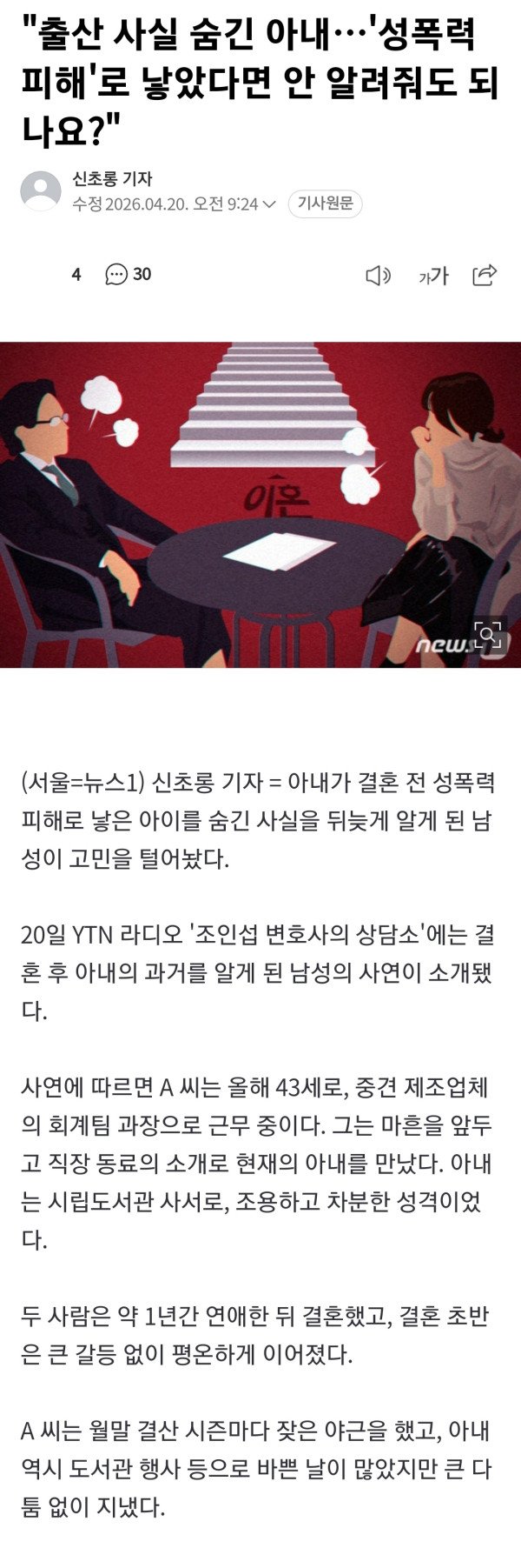 성폭력 피해로 생긴 출산 사실 숨긴 아내... 이해해야 될까요?