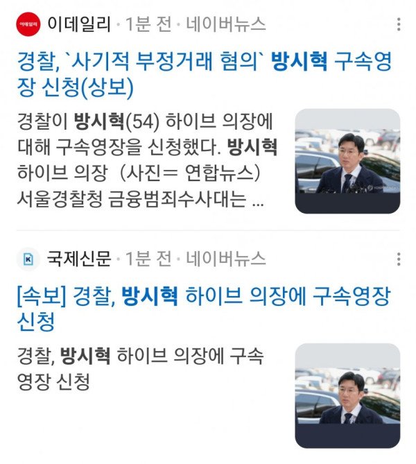 경찰, 방시혁 하이브 의장 구속영장 신청