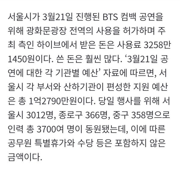 BTS 공연에 쓰인 ‘공공예산’은 정당한가
