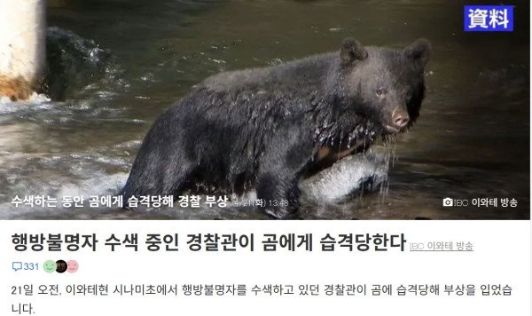 가뜩이나 현재 일본에는 전국적으로 야생 곰들의 숫자가 무진장 많다고 하던데 그래서 괜히 무섭노