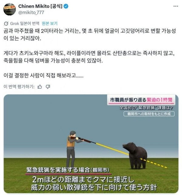 심각심각 일본 지자체 곰사냥 훈련 현실