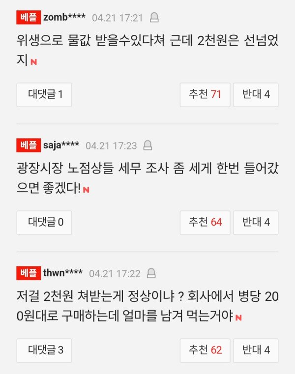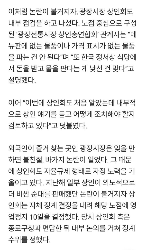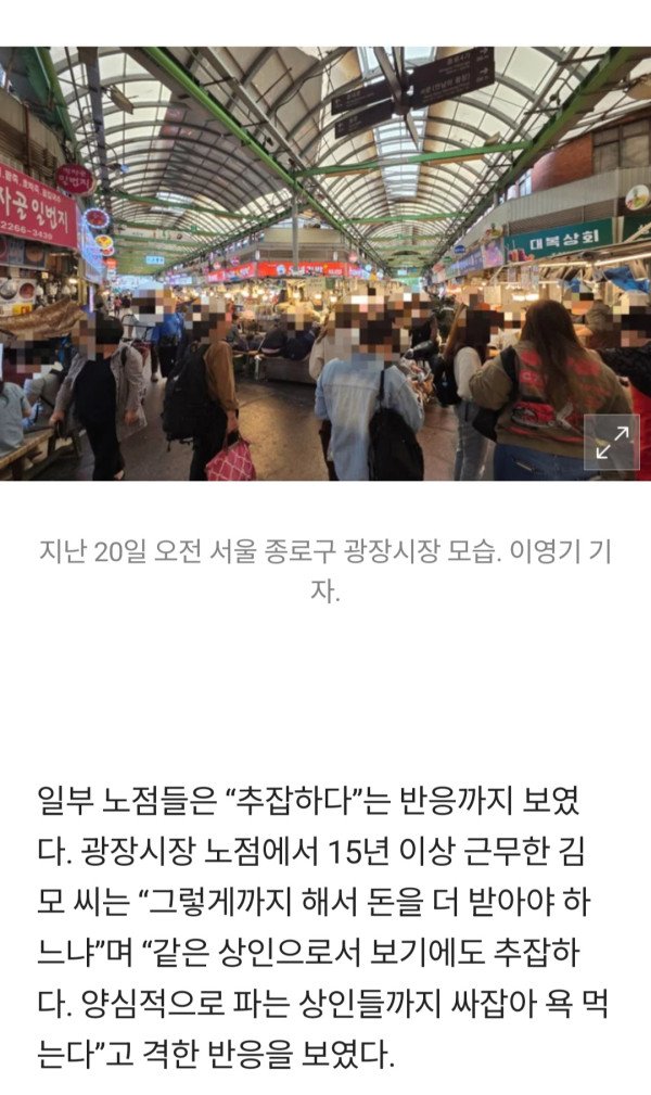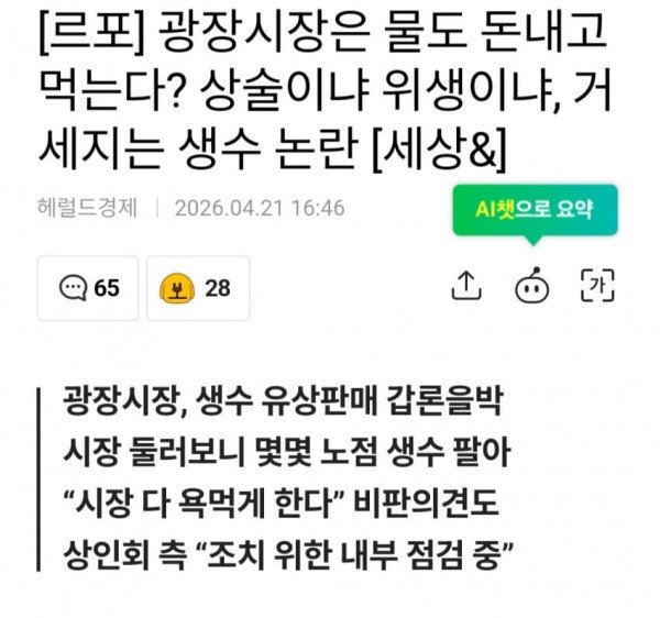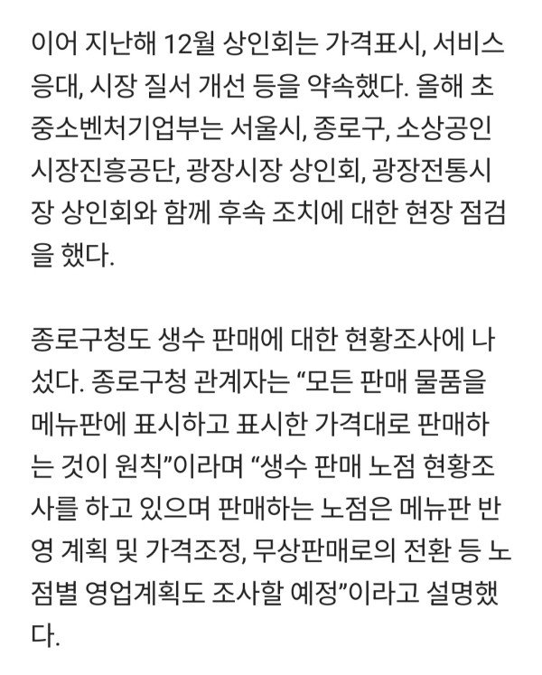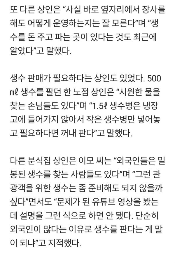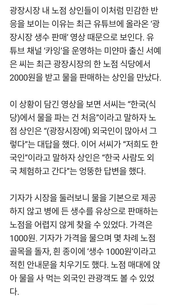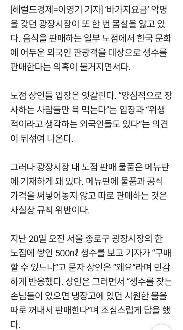 광장시장 거세지는 생수 논란