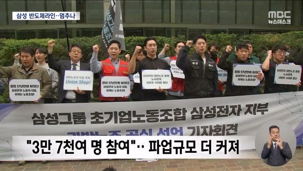 삼성 노조, 다음달 21일, 5개 반도체라인 가동 중단