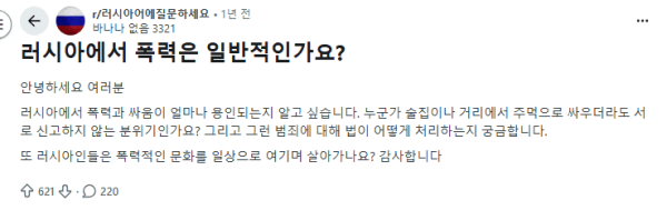 궁금궁금 러시아인들은 진짜 폭력적인가요?