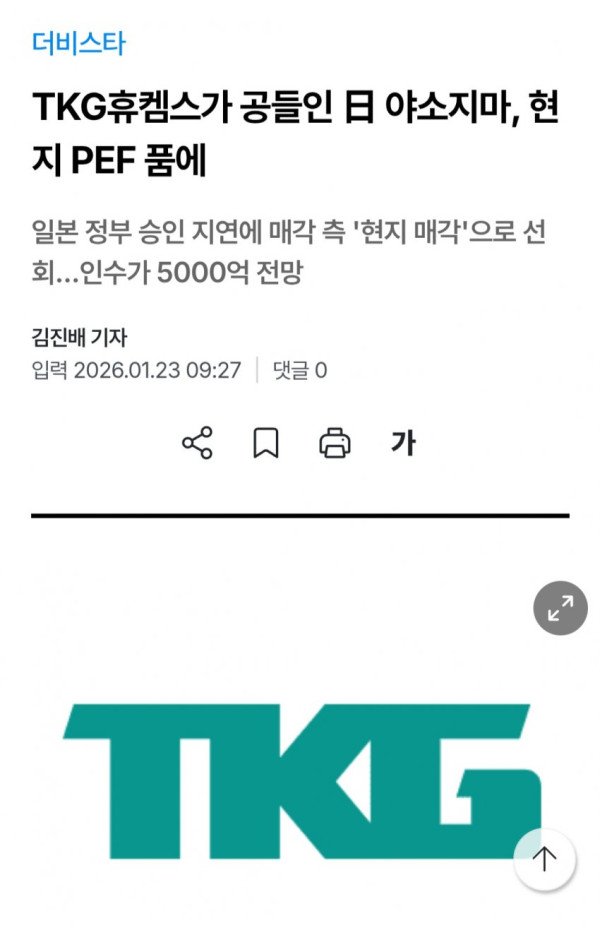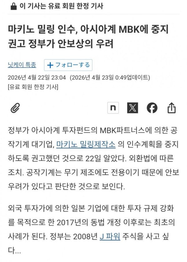 저게 위험할뻔한게 이시바 기시다때였음 MBK한테 마키노 넘어간뒤 조센 기업에 팔았을게 뻔한데