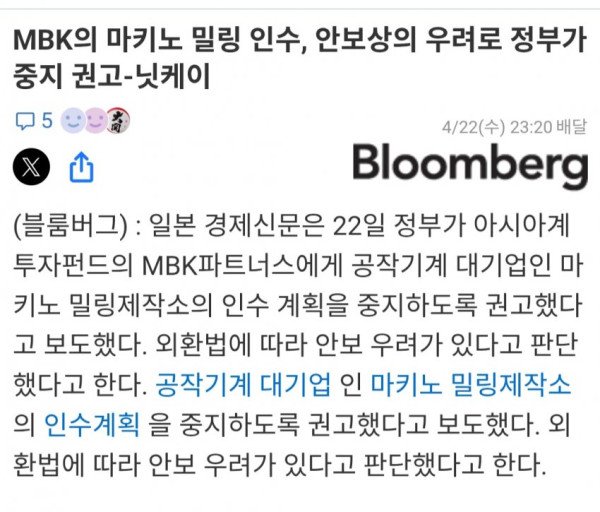 이시바 기시다였음 MBK가 마키노 인수하게 냅뒀을거다