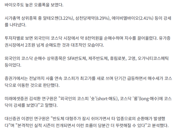 코스닥, 25년여만에 최고치 찍었다…반도체 소부장·바이오 견인