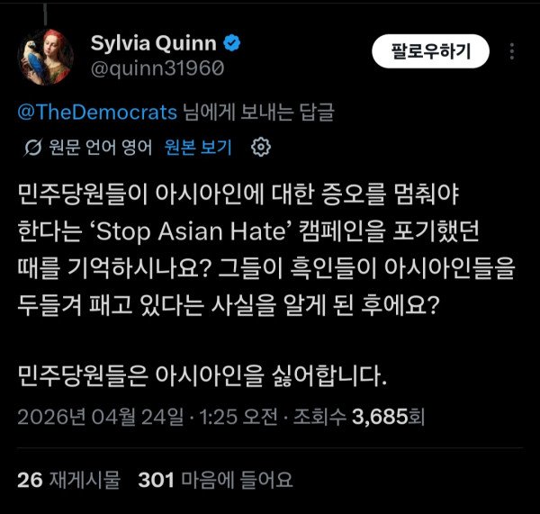 그래도 펨대남들은 미국민주당 지지할 듯