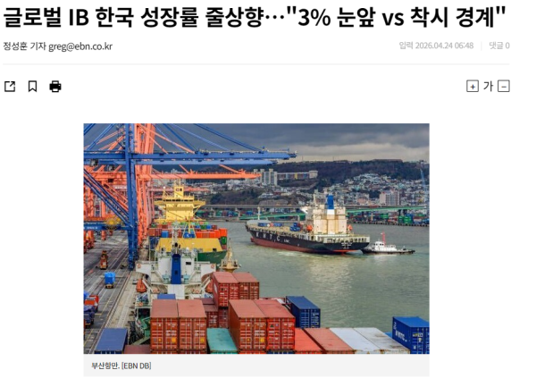 글로벌 IB 한국 성장률 줄상향…"3% 눈앞 vs 착시 경계" - 이비엔(EBN)뉴스센터