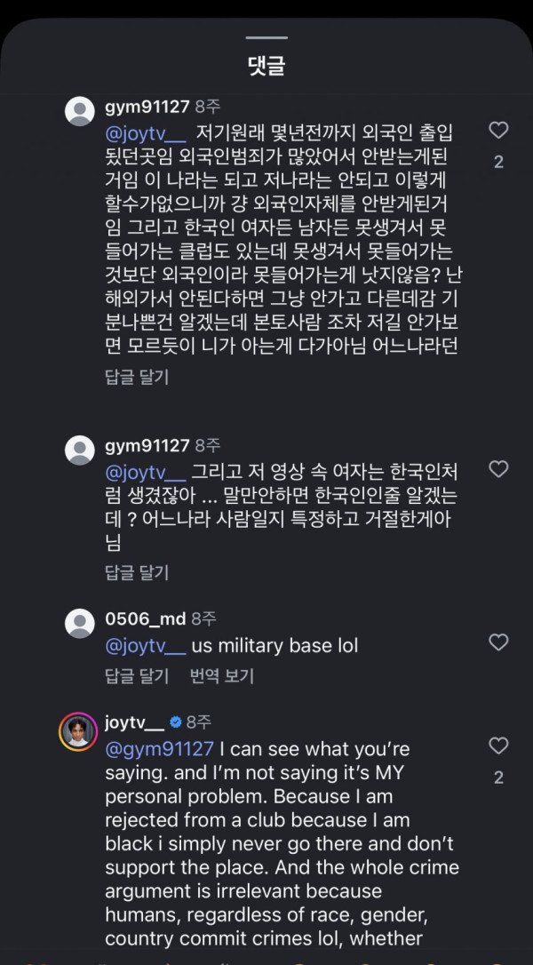 어느 흑인이 where? 이러면서 오로지 외국인 차별만 있다고 함