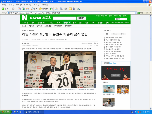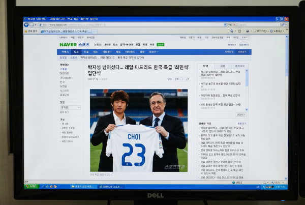 2009년 가상의 한국 축구 선수가 레알 마드리드 입단식을 진행하는 중