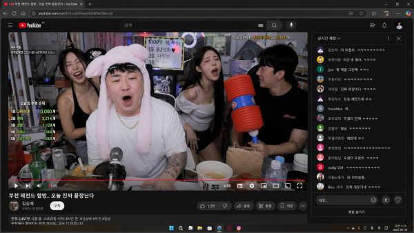 2025년 유튜브 라이브 방송을 진행중인 부천 BJ, 동료 몇명과 막장스러운 방송을 진행 중인 상황 캡쳐한 스크린샷 이미지