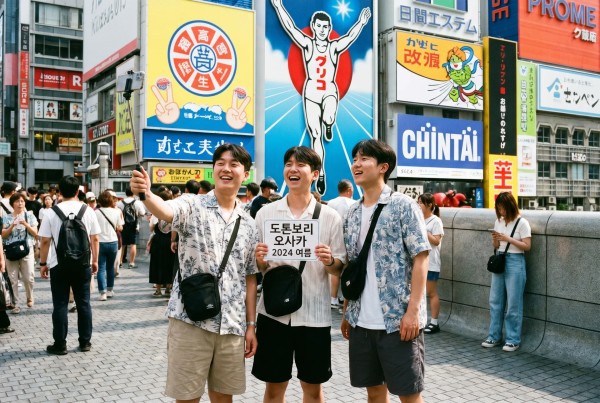2024년 여름 오사카 도톤보리로 여행을 간 남자 대학생 3명
