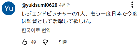 레전드 투수 중 한 명, 일본에서 감독 해줬으면 좋겠다