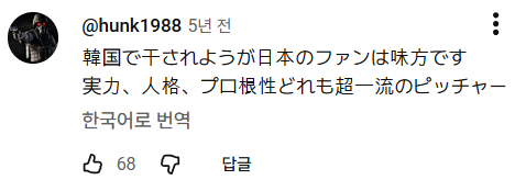 한국에서 외면받더라도 일본 팬들은 당신의 편입니다. 실력, 인품, 프로의식 모두 초일류인 선수.