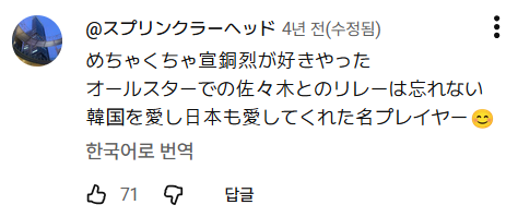 선동열 진짜 좋아했어. 올스타전에서 사사키와의 릴레이는 아직도 기억해 한국도 사랑하고 일본도 사랑한 명선수