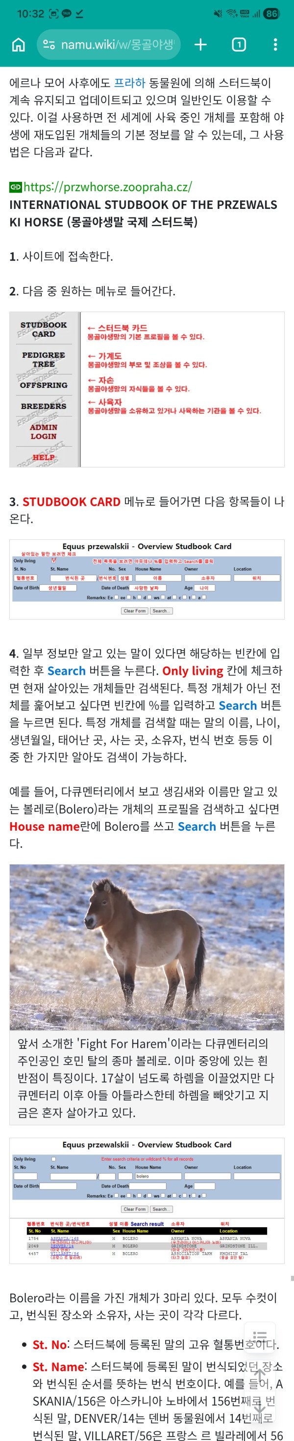 인류의 말 가축화 이전부터 인류와 따로 살며 진화한 지구상 최후의 야생마 종으로, 나머지 종은 세월은 견디지 못하고 모두 사라지고 얘만 남았다고함