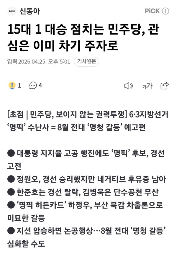 15대 1 대승 점치는 민주당, 관심은 이미 차기 주자로
