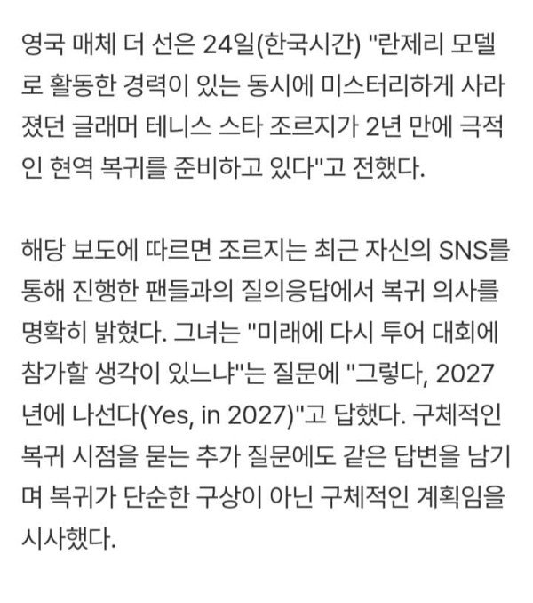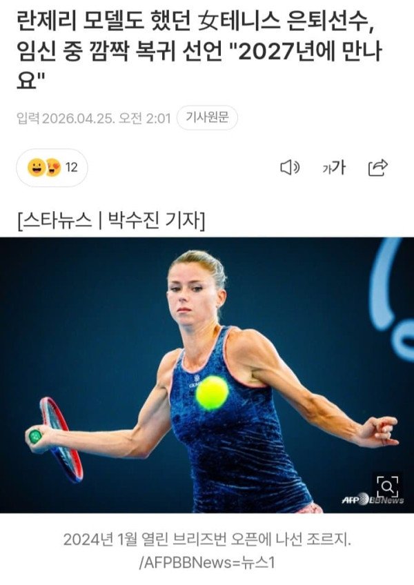 란제리 모델도 했던 女테니스 은퇴선수, 임신 중 깜짝 복귀 선언 "2027년에 만나요"