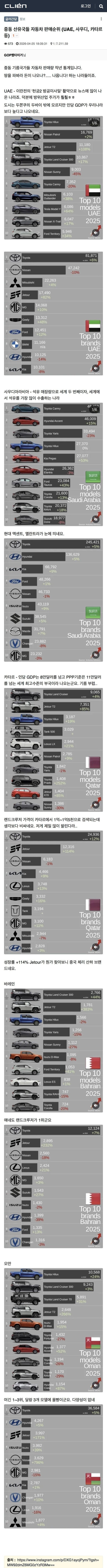 [펌] 중동 산유국 자동차 판매량 랭킹 (필독 요망)