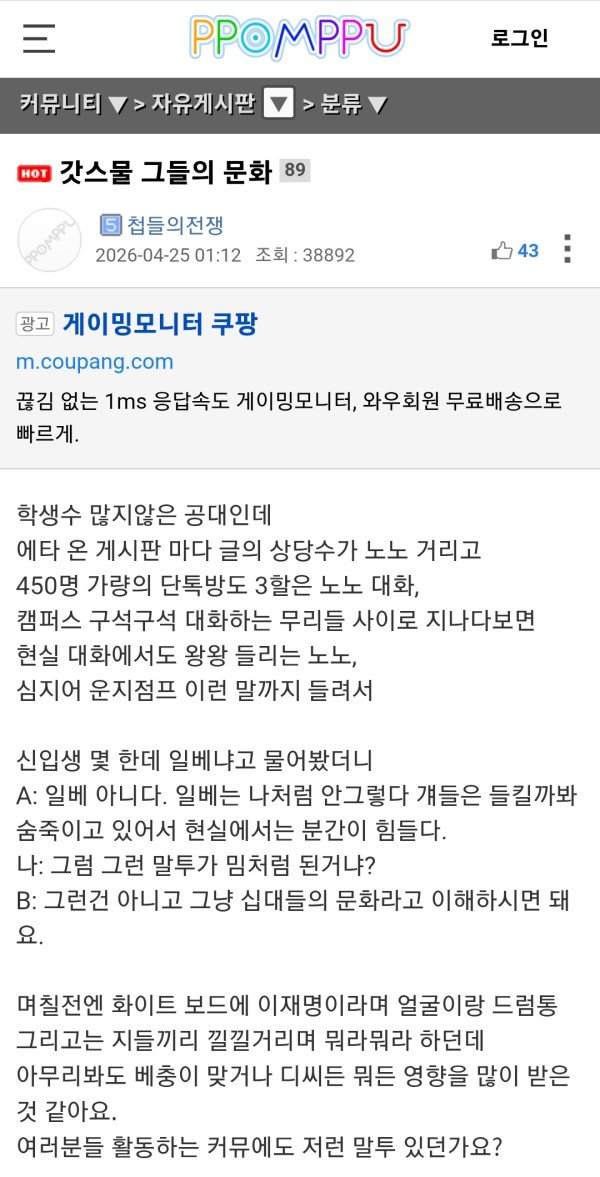 갓스물 그들의 문화...일베냐고 물어봤더니