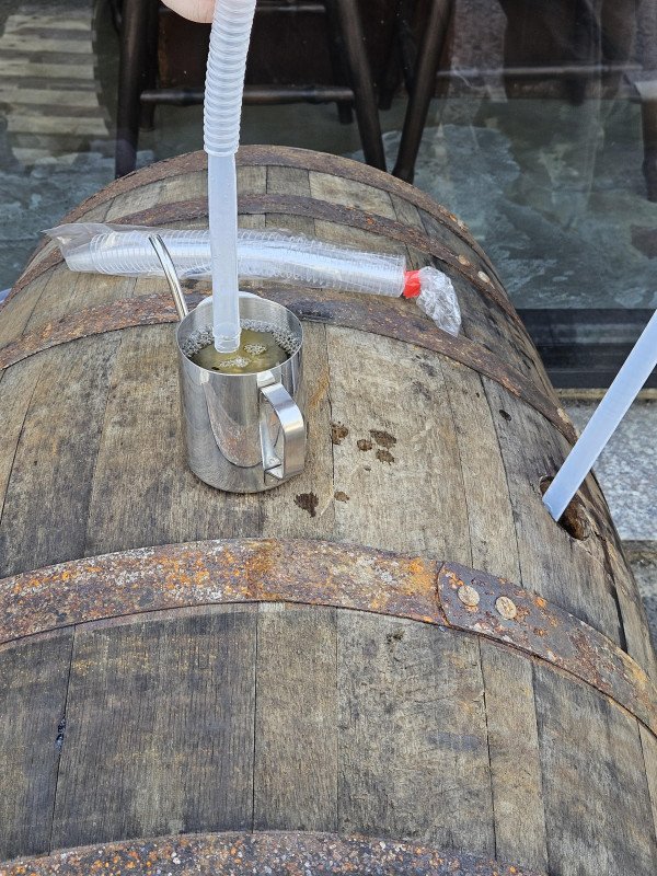캐스크 내부를 한 번 비워준 다음 물과 어텀을 부어서 내부를 세척해준 다음 어텀을 넣었습니다.